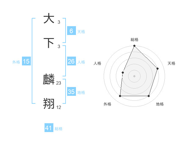大下 麟翔さんを姓名の画数から五運を鑑定