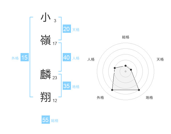 小嶺 麟翔さんの天格は20画の1点!