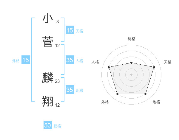 小菅 麟翔さんの総格は50画の2点!