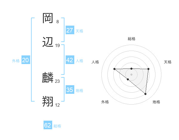 岡辺 麟翔さんの総格は62画の1点!