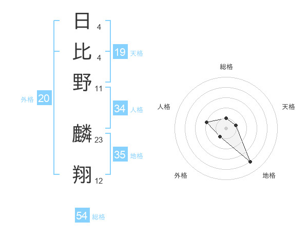 日比野 麟翔さんを姓名の画数から五運を鑑定