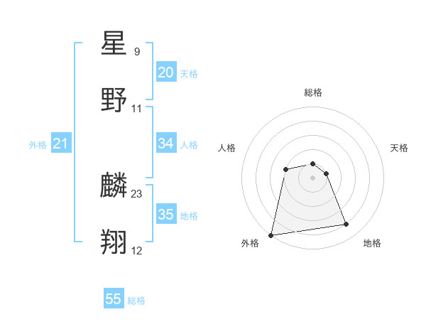 星野 麟翔さんを姓名の画数から五運を鑑定