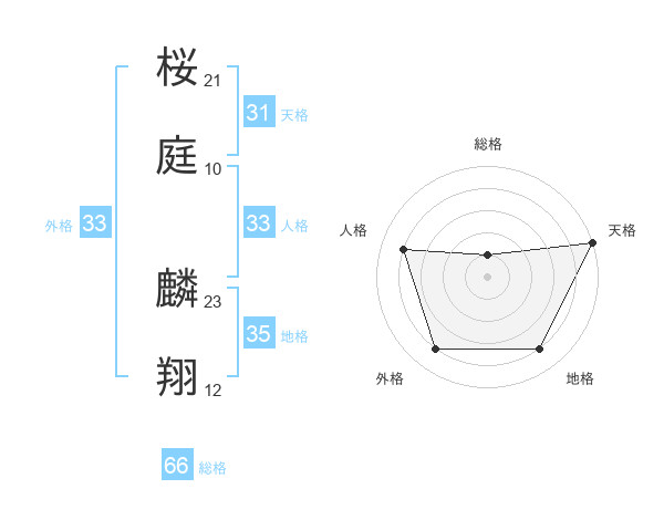 桜庭 麟翔さんを姓名の画数から五運を鑑定