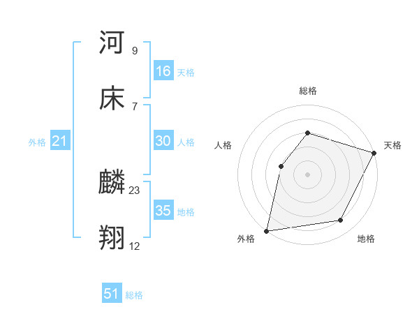 河床 麟翔さんを姓名の画数から五運を鑑定