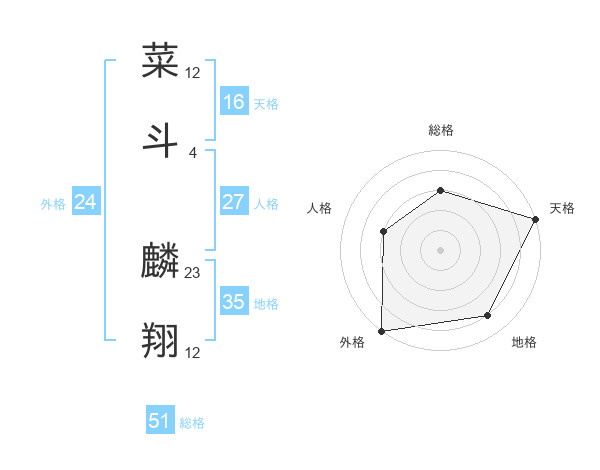 菜斗 麟翔さんを姓名の画数から五運を鑑定
