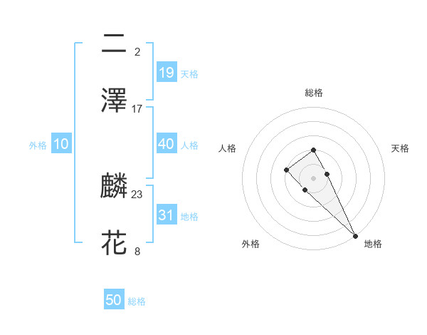 二澤 麟花さんの総格は50画の2点!