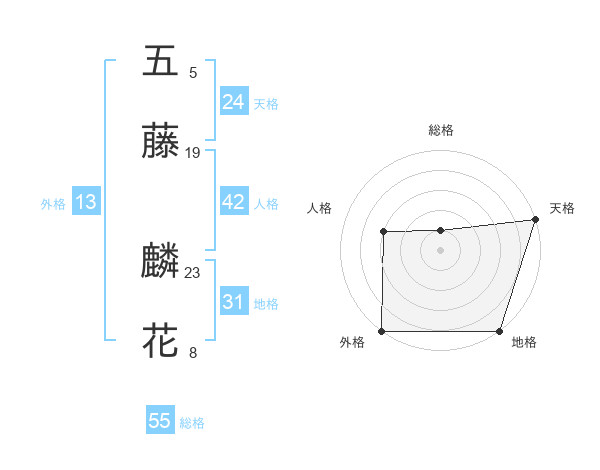 五藤 麟花さんを姓名の画数から五運を鑑定