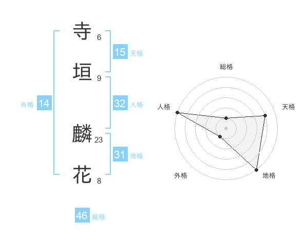 寺垣 麟花さんを姓名の画数から五運を鑑定