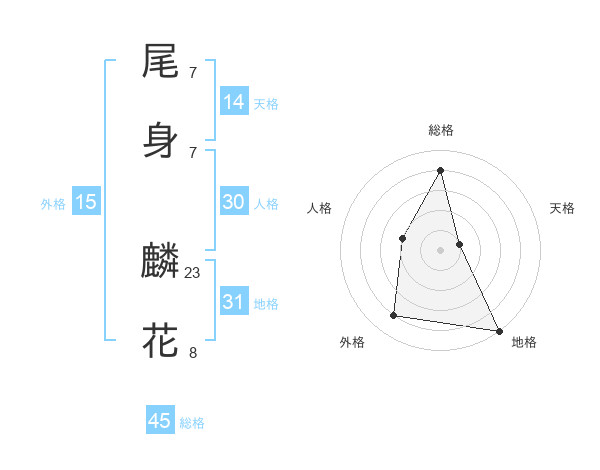 尾身 麟花さんの総格は45画の4点!