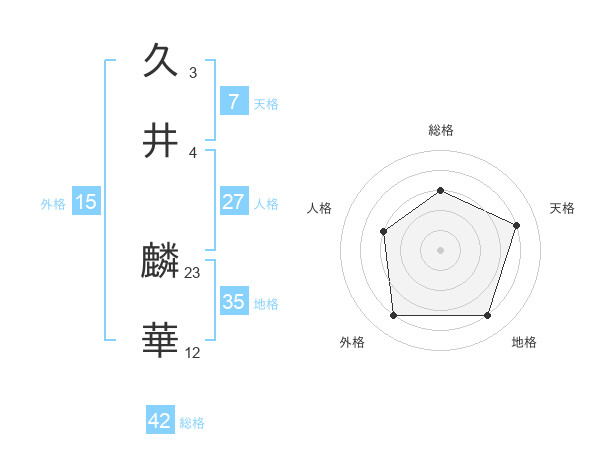 久井 麟華さんの総格は42画の3点!