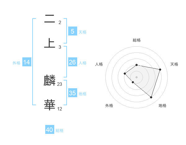二上 麟華さんの総格は40画の2点