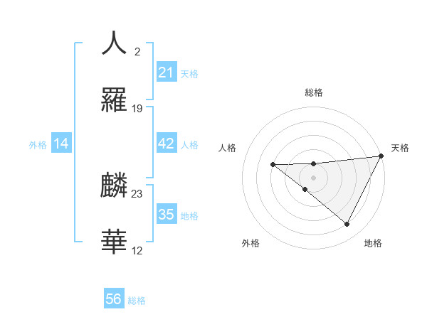 人羅 麟華さんの総格は56画の1点!