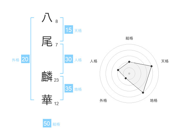 八尾 麟華さんの天格は15画の4点!