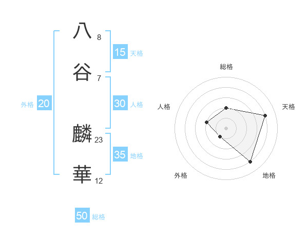 八谷 麟華さんの総格は50画の2点!
