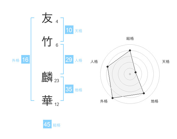 友竹 麟華さんの総格は45画の4点!