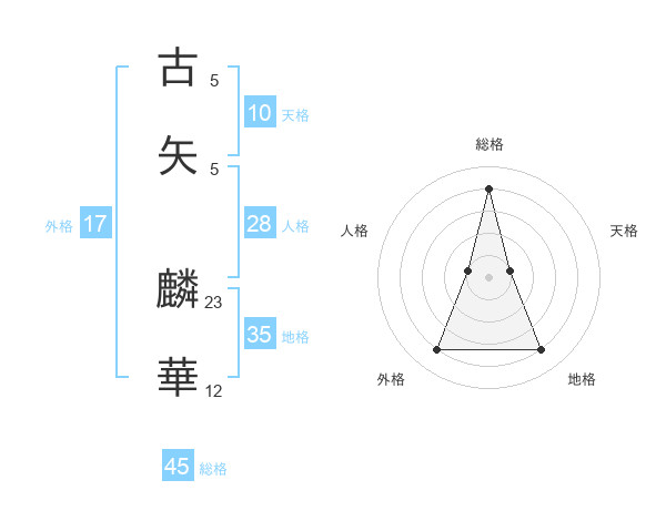古矢 麟華さんの総格は45画の4点!