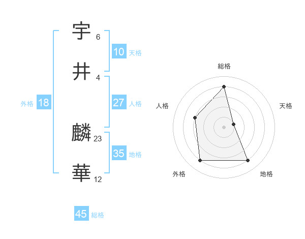 宇井 麟華さんを姓名の画数から五運を鑑定
