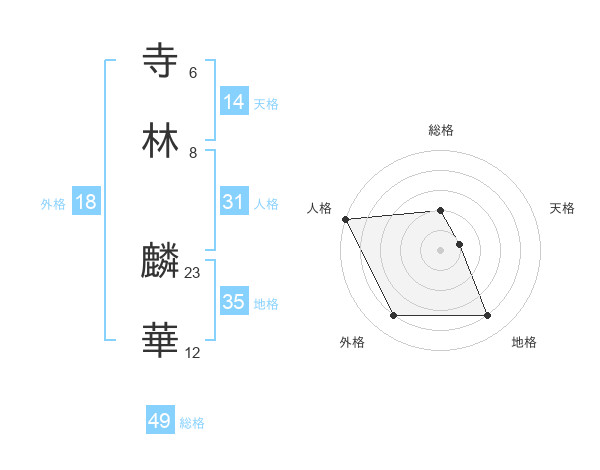 寺林 麟華さんの天格は14画の1点!