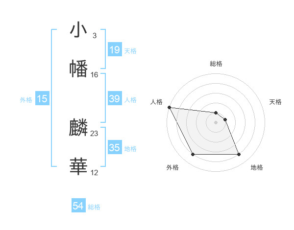 小幡 麟華さんを姓名の画数から五運を鑑定