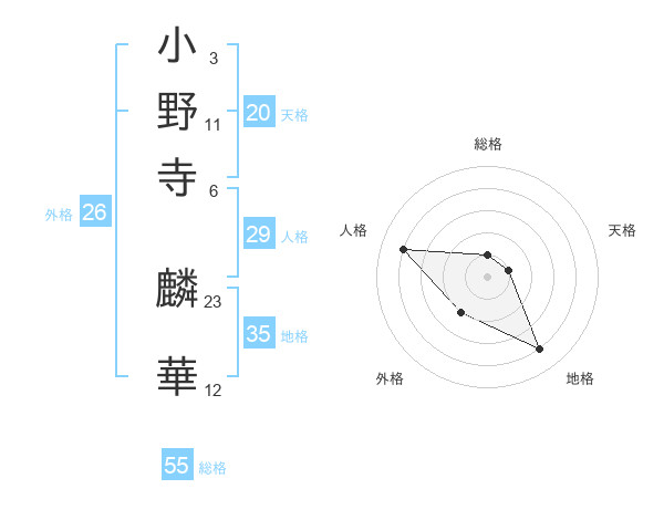 小野寺 麟華さんを姓名の画数から五運を鑑定