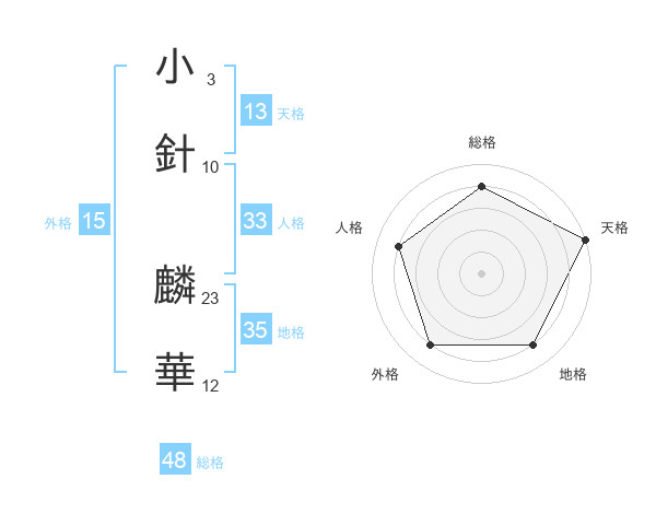 本サイトの鑑定結果の正当性は保証しません。鑑定結果は参考程度にお読みください。実際の名づけにご利用される場合は、姓名判断についてご自身でよくお調べください。
