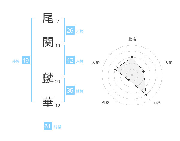 尾関 麟華さんを姓名の画数から五運を鑑定