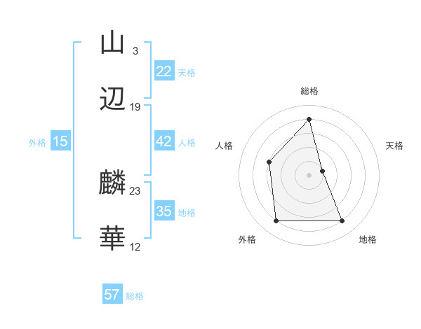 山辺 麟華さんの総格は57画の4点