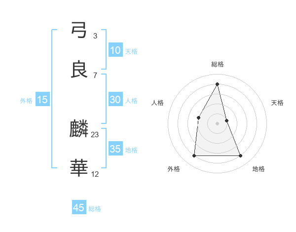 弓良 麟華さんを姓名の画数から五運を鑑定