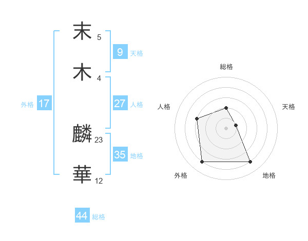 末木 麟華さんを姓名の画数から五運を鑑定