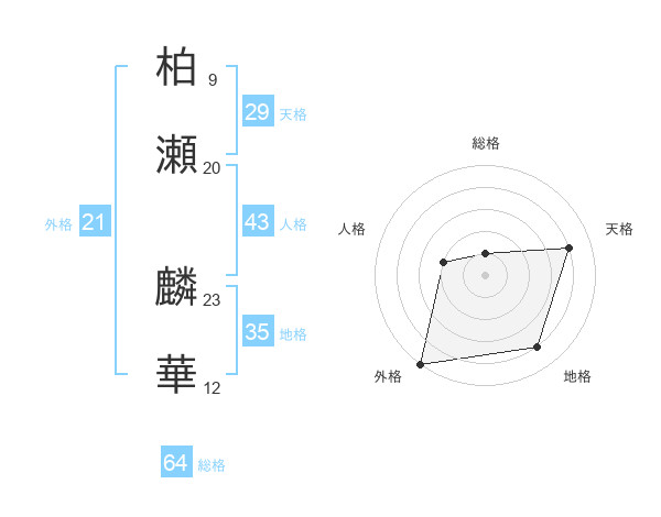 柏瀬 麟華さんの天格は29画の4点!