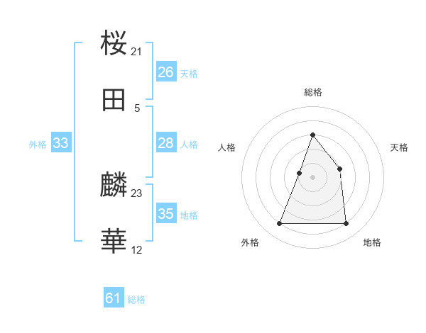 桜田 麟華さんを姓名の画数から五運を鑑定