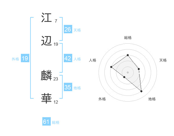 江辺 麟華さんの総格は61画の3点!