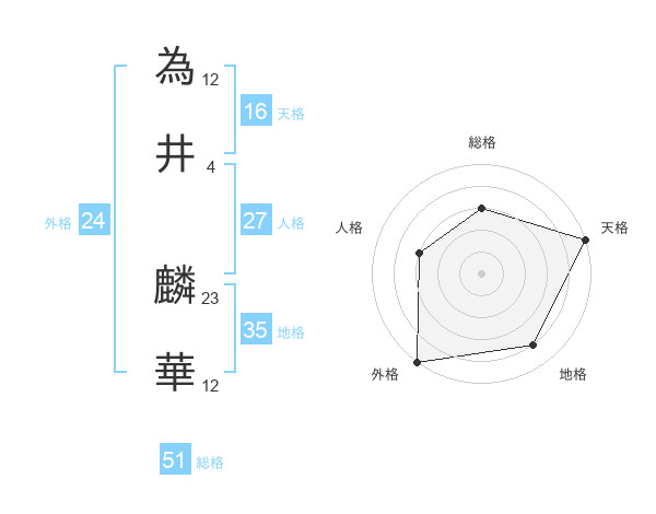 為井 麟華さんの総格は51画の3点!