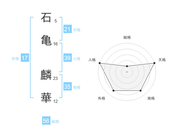 石亀 麟華さんを姓名の画数から五運を鑑定