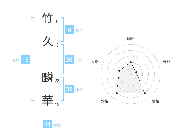 竹久 麟華さんの総格は44画の2点