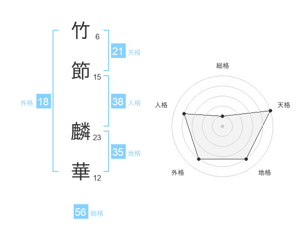 竹節 麟華さんを姓名の画数から五運を鑑定