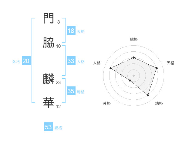 門脇 麟華さんの総格は53画の3点