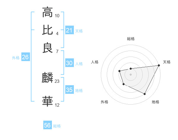 高比良 麟華さんの天格は21画の5点!