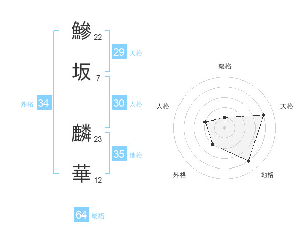 鰺坂 麟華さんの外格は34画の2点!