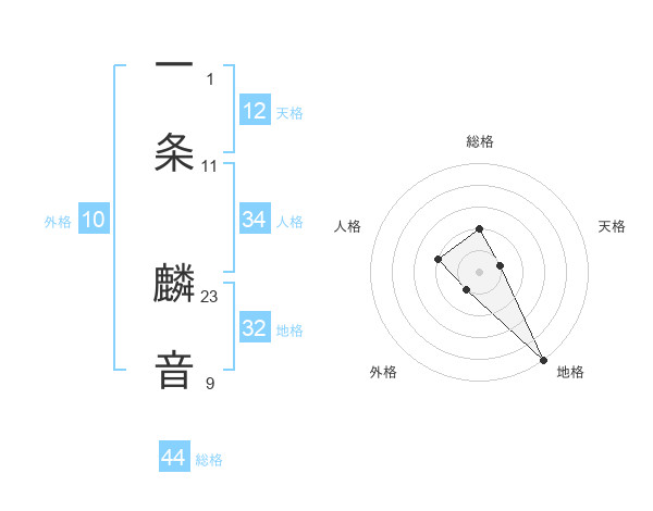 一条 麟音さんの総格は44画の2点!
