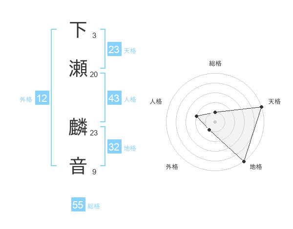 下瀬 麟音さんを姓名の画数から五運を鑑定