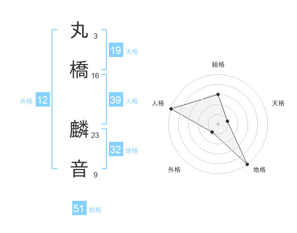 丸橋 麟音さんの総格は51画の3点!
