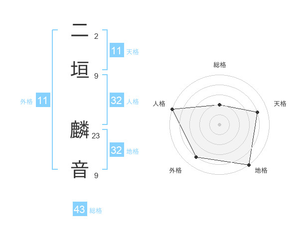 二垣 麟音さんを姓名の画数から五運を鑑定