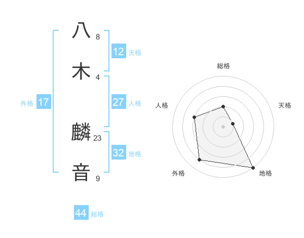 八木 麟音さんの総格は44画の2点