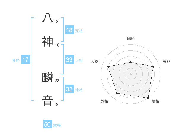 八神 麟音さんの総格は50画の2点!