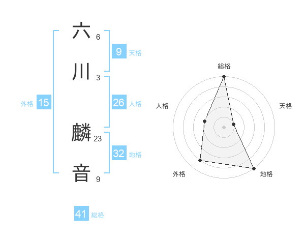 六川 麟音さんの総格は41画の5点!