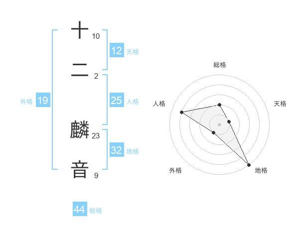 十二 麟音さんの総格は44画の2点!