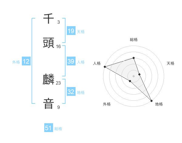 千頭 麟音さんを姓名の画数から五運を鑑定
