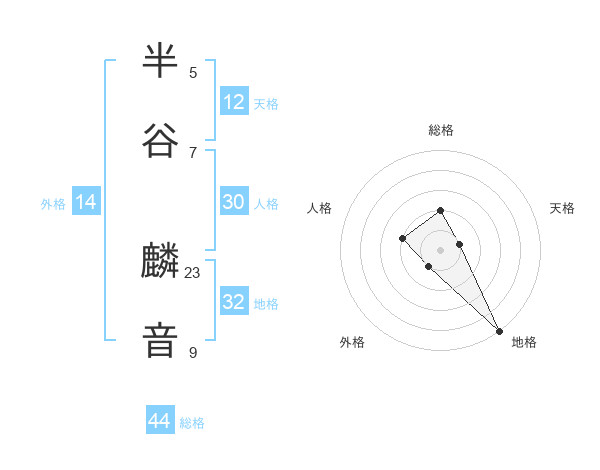半谷 麟音さんの総格は44画の2点!