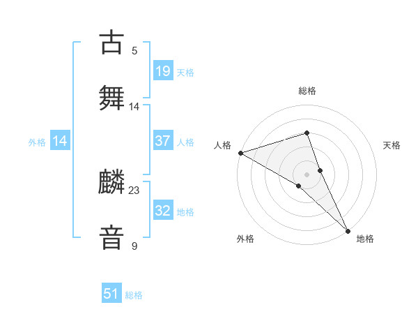 古舞 麟音さんの総格は51画の3点!